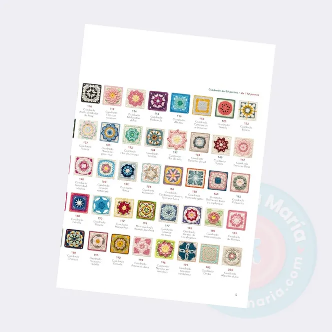 También incluye explicaciones sobre los distintos puntos y las técnicas para unir los cuadros. Esta colección de motivos muestra las infinitas posibilidades de los Granny Squares Crochet (Cuadrados de la Abuela).