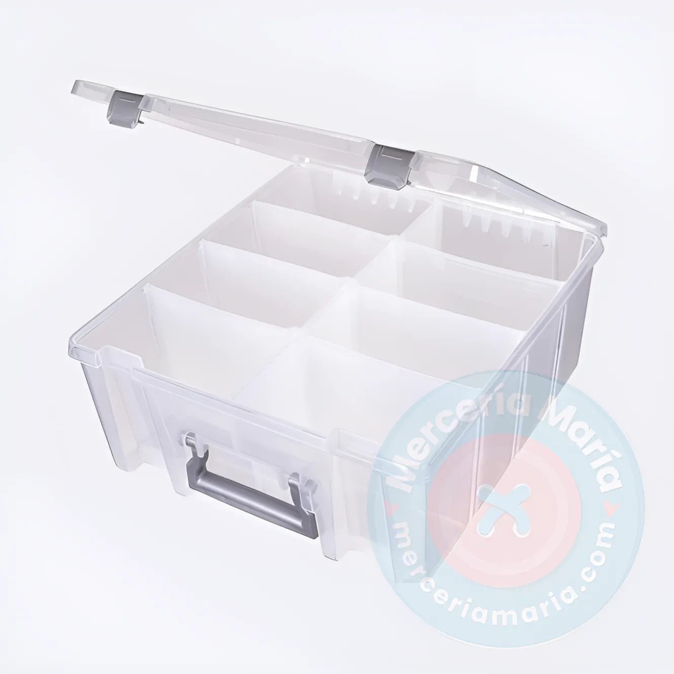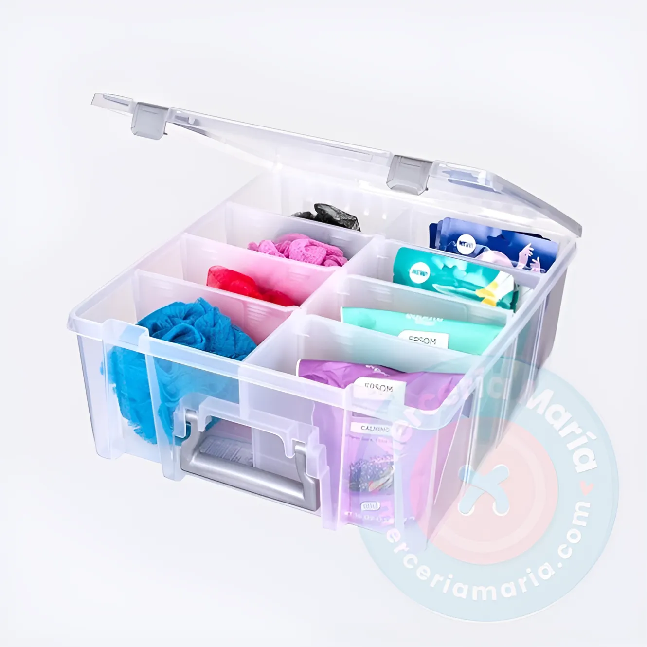 - Caja de organización: ideal para organizar cualquier tipo de materiales como manualidades, herramientas de costura, productos del hogar y mucho más