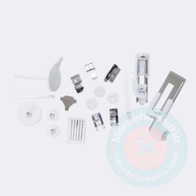 - 7 prensatelas incluidos: diversos prensatelas para técnicas específicas.