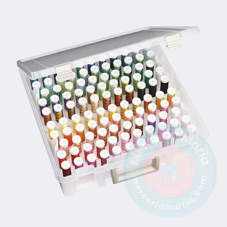 Asegura que cada color y tipo de hilo esté siempre accesible y bien organizado. Además, la caja organizadora cuenta con una tapa transparente que te permite visualizar el contenido sin necesidad de abrirla.